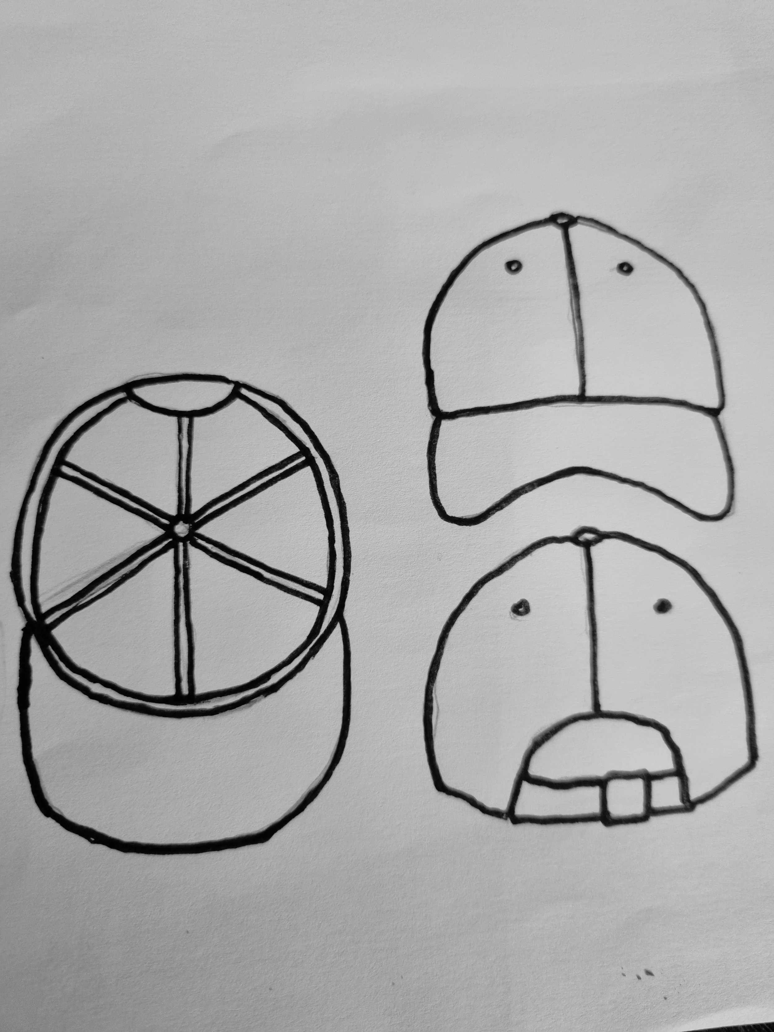 Sketching cap angles and characters imagining who it’s built for before the fabric ever existed.